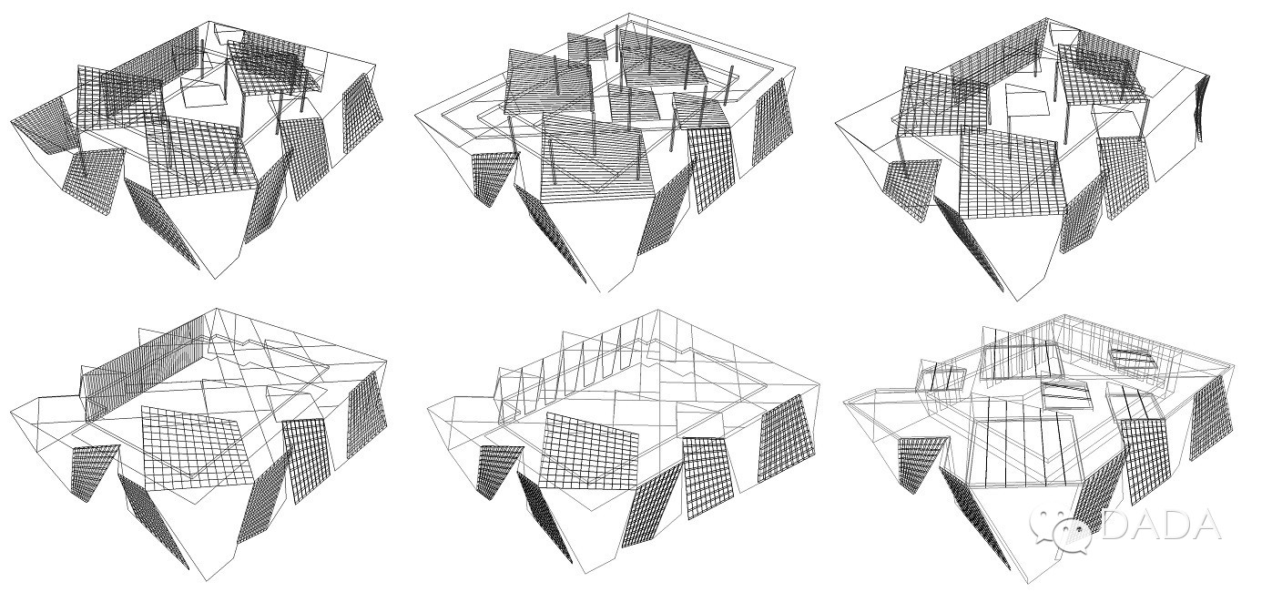 根据规则曲面的几何特性,编写了曲面格栅和曲面幕墙的参数化生成程序,输入密度,进深等控制参数即可生成构件。同时将面积、厚度以及对应的用钢量等指标存储在数据库当中,实时输出反馈给相关专业以及业主,为比较不同设计方案的造价变化提供了快速准确的依据。形体生成规则以参数化方法描述,例如钢格栅以密度、进深、角度等参数进行控制。生成过程编写为程序,在设计周期很短的情况下,对比了十种以上不同可能,很短时间即可完成方案模型的重建。